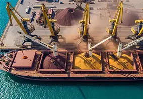 حمل غلات، مواد معدنی، فولاد، تجهیزات سنگین و محمولات پروژهای با چارترینگ اختصاصی یا استفاده از کشتیهای خطوط معتبر.